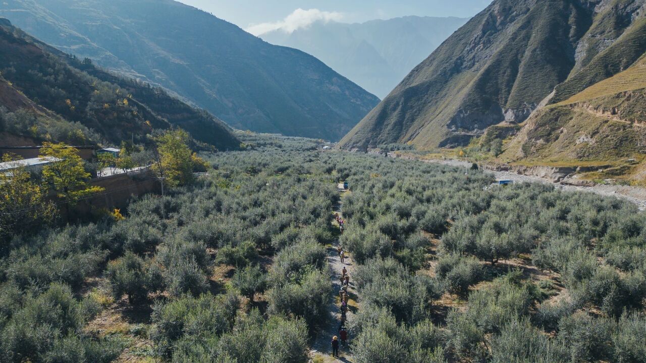 在隴南武都區漢王鎮佛堂溝,漫山遍野的油橄欖樹如綠色絲帶纏繞山間,很難想象這里曾是光山禿嶺、泥石流頻發的貧瘠之地。